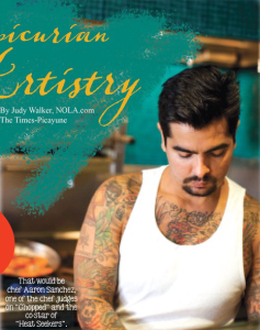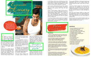 Photography: There are two pictures on this magazine spread. The one of the chef uses the rule of thirds well as it places his head in one of the thirds. It also has the focus all on him blurring out the background creating a good depth of field. The other picture is of a soup that is taken close up. Uses rule of thirds where the bowl takes up the majority of the frame and has warm colors.