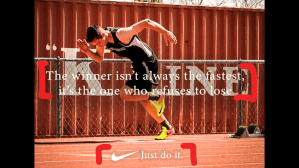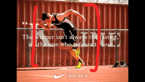 Nike produced these types of advertisments with their sponsored atheletes centered, along with inspiring text from them or another inspired person. The ad I created is similar in design, typeface, and coloring.